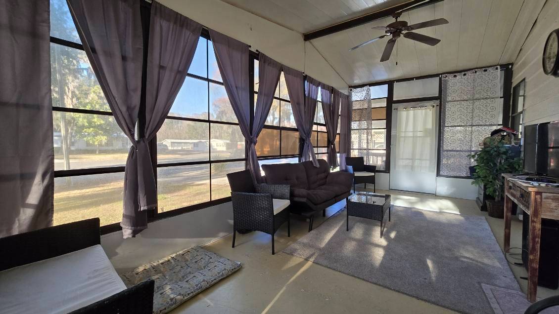 Welcome home to comfort, convenience, and easy Florida living in the highly desirable Foxwood Farms 55+ community in Ocala! This beautifully maintained 2-bedroom, 2-bath home is move-in ready and packed with valuable updates for peace of mind. Enjoy major upgrades including a brand-new HVAC system (2025), new energy-efficient windows (2025), and a roof replaced in 2018 - giving you confidence for years to come. Step inside to find luxury vinyl plank flooring throughout, offering a modern look with durability and easy maintenance. The spacious layout features walk-in closets in both bedrooms, providing generous storage. The primary bathroom was fully remodeled in 2025, creating a fresh, updated retreat you'll love. The bright kitchen shines with stainless steel appliances (2023) and flows comfortably into the main living areas - perfect for entertaining or relaxed everyday living. Enjoy your morning coffee or evening breeze in the lanai with vinyl windows, offering year-round enjoyment. Need extra space? You'll appreciate the extended workshop/storage area, ideal for hobbies, tools, or additional storage. Situated on a larger lot in an open cul-de-sac, this property provides a peaceful setting while still being close to all the amenities Foxwood Farms has to offer. Enjoy the friendly atmosphere that comes with living in Foxwood Farms, a community known for its welcoming neighbors and amenities including a sparkling swimming pool, billiards, fitness center, fishing, library, picnic areas and shuffleboard. Monthly lot rent is $960 and covers your water, sewer, trash pickup, lawn mowing AND taxes. Conveniently located within minutes of shopping, dining and entertainment. Don't miss your chance to enjoy the Florida lifestyle you've been waiting for - schedule your showing today!